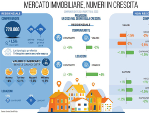 Per i valori di mercato si è registrato un aumento medio di un +3% (2024 su 2023) con le grandi città a forte vocazione turistica, universitaria e lavorativa, che registrano rispettivamente a Torino (+3,1%), Roma (+4%), Napoli (+2,3%) e Milano (+1,6%).