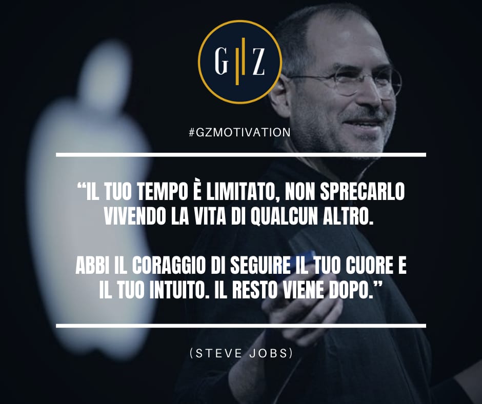 Buon inizio settimana con GZmotivation " Il tuo tempo è limitato, non sprecarlo vivendo la vita di qualcun altro. Abbi il coraggio di seguire il tuo cuore e il tuo intuito. Il resto viene dopo. " Ogni lunedì una frase, un' ispirazione, una motivazione per iniziare al meglio la settimana. E' questa frase di Steve Jobs quella selezionata dal nostro team per augurarti un buon inizio di...